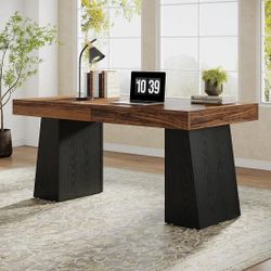 55" Executive Desk With Double Trapezoid Base, Modern Wooden Computer Desk For Home Office$139Downey, CA