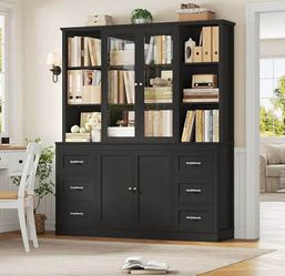 75" x 55" Kitchen Pantry Storage Cabinet with Glass Doors and Drawers, Wide China Cabinet Hutch$219Downey, CA