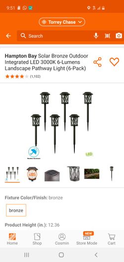 Hampton Bay Solar Bronze Outdoor Integrated LED 3000K 6-Lumens Landscape Pathway Light (6-Pack$20Houston, TX