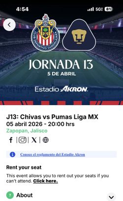 Chivas vs Pumas Estadio Akron$60Downey, CA