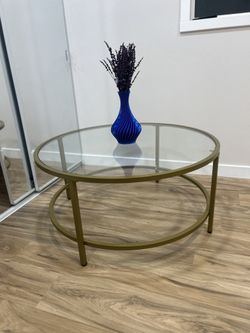 Costway 36" Round Coffee Table Tempered Glass Tabletop Metal Frame Living Room Golden$45Gardena, CA