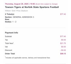 Michael Vick First Home Game! Norfolk State Vs TOWSON. Great Deal$50Hampton, VA