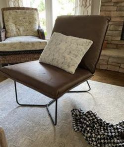 Single Contemporary Brown Faux Leather Accent Chair Black Metal Legs Boho Chic Farmhouse Living Room Lounge Chairs$190Houston, TX