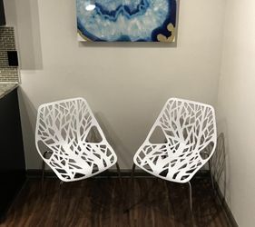 New Set Of 2 White Silver Stencil Chairs Modern Dining Chairs$130Houston, TX