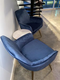 Set Of NEW Glam Blue Velvet Accent Chairs Modern Gold Legs Office Chair Desk Chair Dining Chairs $275Houston, TX