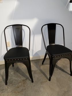 Set Of 2 Black Metal Dining Chairs Studded Faux Leather Seats$100Houston, TX