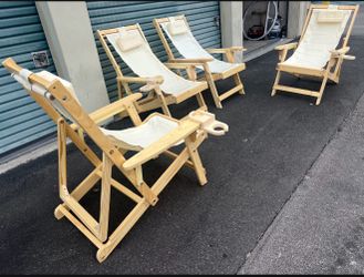 Patio Chairs,Balcony,4 Folding Chairs Canvas with Cup Holder, Beige Cushion,wood.$199Las Vegas, NV