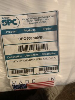 Brady SPC BPO500 100/BL 15”by 17” Pad-DMP-PERF OIL$100Rialto, CA