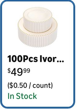 100 ELEGANT PLATES 50 DINNER 50 CAKE IVORY WITH GOLD BEADS DISPOSABLE HARD PLASTIC$30El Paso, TX