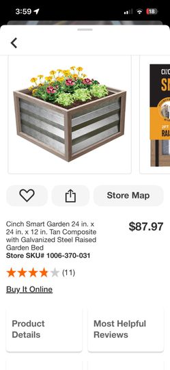 Cinch Smart Garden 24 in. x 24 in. x 12 in. Tan Composite with Galvanized Steel Raised Garden Bed$65Aurora, CO