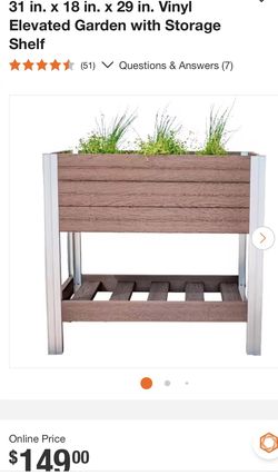 31 in. x 18 in. x 29 in. Vinyl Elevated Garden with Storage Shelf$130Aurora, CO