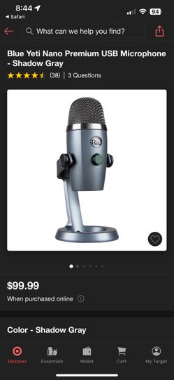 Blue Yeti Nano Premium USB Microphone - Shadow Gray$75Avondale, AZ