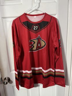 Los Angeles Angels/Anaheim Ducks Mike Trout #27 collaboration hockey-style lightweight jersey. It was a promotional stadium giveaway (SGA) item from "$25Artesia, CA