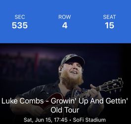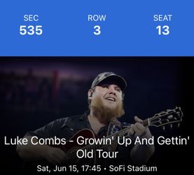 Luke Combs 6/15 @SoFi Stadium$125Inglewood, CA