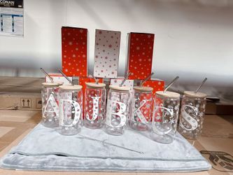 16oz Initial Glass Cups with Lid and Straw$10Rowland Heights, CA