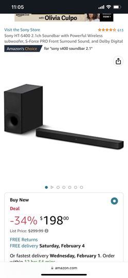 HT-S400 2.1ch Soundbar with Powerful Wireless subwoofer, S-Force PRO Front Surround Sound, and Dolby Digital$145Phoenix, AZ