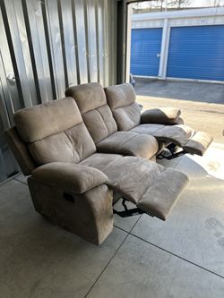 Sofa Couch Suede Recliner Grayish Color‼️Both Sides Recline with Button‼️$150‼️$150Trinity, NC
