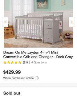 Dream On Me Light Grey Crib 4-in-1 Convertible Crib and Changer Combo$150Cty Of Cmmrce, CA