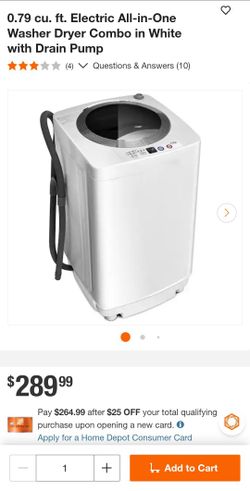 0.79 cu. ft. Electric All-in-One Washer Dryer Combo in White with Drain Pump$160Glendora, CA
