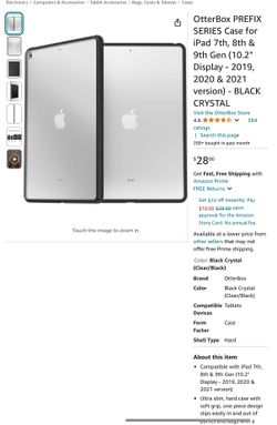 OtterBox PREFIX SERIES Case for iPad 7th, 8th & 9th Gen (10.2" Display - 2019, 2020 & 2021 version) - BLACK CRYSTAL$12Ashburn, VA