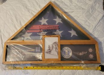 $50.00 Flag Case, Triangle, Wood & Glass Also Holds Photo, Pins & Momentos$50Bushnell, FL