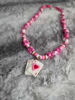 Pink Beaded Necklace w/ Playing Card Heart Charm πβ οΈ$14West Linda, CA