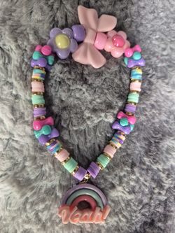 Handmade Pastel Beaded Bracelet w/ Rainbow βYeahβ Charm ππ