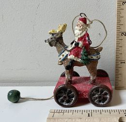 Vtg Santa on Reindeer w Wheels & Beaded Pulley Christmas Ornament$10New York, NY