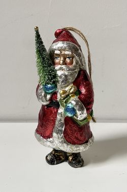 Pottery Barn Glass Santa Ornament Holding A Christmas Tree Hollow Ceramic 5.5’’x2.5’’$20Peck Slip, NY
