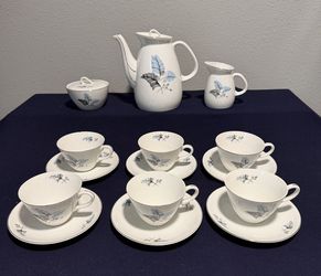 White Porcelain 17 Piece, Coffee Set Blue Black Feather Design$10Tarpon Springs, FL