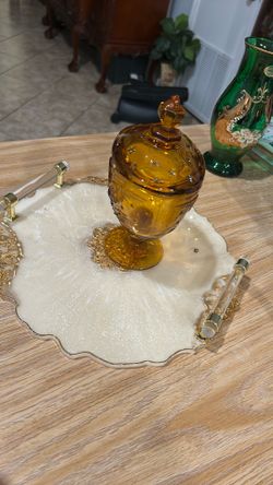 Vintage Amber Glass Footed Candy Dish With Lead Eagle Design$20Sanford, FL