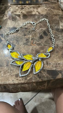 Yellow Resin 3D Textured Silver Tone Leaf Necklace $15Sanford, FL