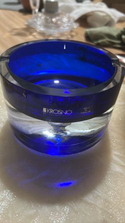 vintage cobalt blue and clear glass ashtray manufactured by Krosno Glassworks in Poland. $25Sanford, FL