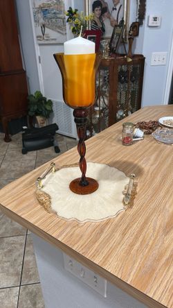 Vintage 70s Empoli Amber Blown Glass Twisted Stem Footed Candle Holder Crackle$20Sanford, FL