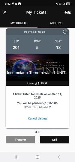 Insomniac Tomorrowland 2 Tickets For Tonight$375Las Vegas, NV