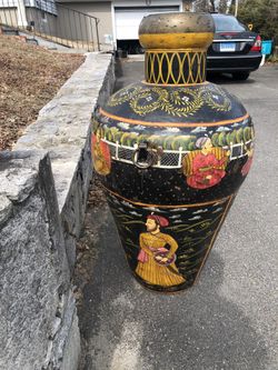 Colorful Metal Vase is unique and hand-pained. $600Waterbury, CT