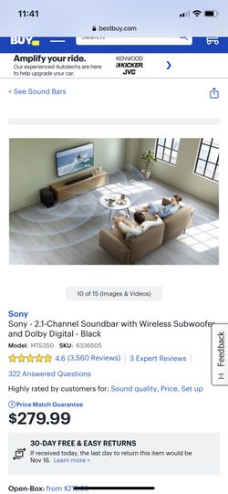 Sony - 2.1-Channel Soundbar with Wireless Subwoofer and Dolby Digital - Black$120West Palm Beach, FL