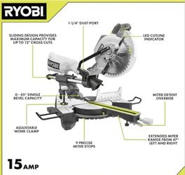 Brand New Ryobi 10" Sliding Compound Miter Saw with LED Cutline$250Des Plaines, IL