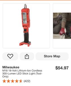 Milwaukee M18 18-Volt Lithium-lon Cordless 300-Lumen LED Stick Light (Tool- Only)$40Miami Gardens, FL