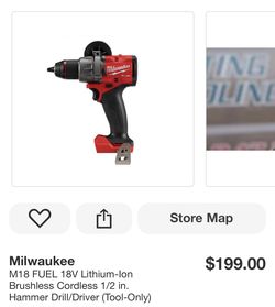 Milwaukee M18 FUEL 18V Lithium-lon Brushless Cordless 1/2 in. Hammer Drill/Driver (Tool-Only)$180Miami Gardens, FL