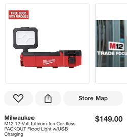 Milwaukee M12 12-Volt Lithium-lon Cordless PACKOUT Flood Light w/USB Charging$130Miami Gardens, FL