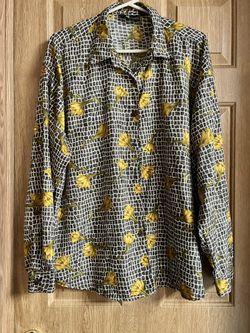 3X size Satin Blouse Beige Framed Brown Squares Yellow Flowers$5No Huntingdon, PA