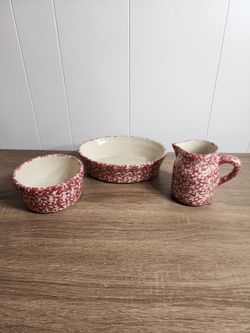 Roseville Red Spongeware Pottery Set$30York, PA