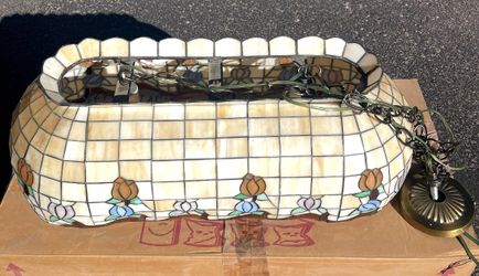 50’s MEYDA TIFFANY Style Stained Glass Lamp oblong pendant , Floral design / BILLIARD/ISLAND$300Eleven Mile, AZ