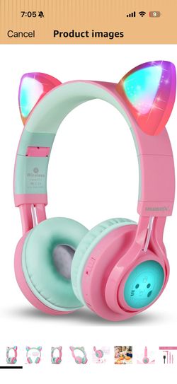 Riwbox CT-7 Cat Ear Bluetooth Headphones, LED Light Up Bluetooth Wireless Over Ear Headphones with Microphone and Volume Control for Travel/School/Sma$12San Diego, CA