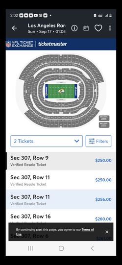 Rams Vs 49ers Tickets Section 307$450Hanford, CA