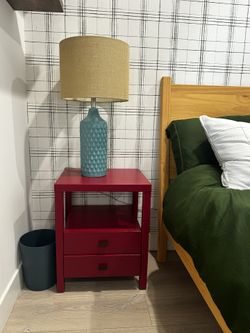 Red 2-Drawer Nightstands (Set of 2) With 2 Teal Ceramic Table Lamps$385Los Angeles, CA