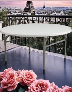 White 5 Ft 60inch Round Plastic Folding Table Commercial Banquet Dining Wedding Party Events Home Kitchen Patio Indoor Outdoor Fold In Half$125La Habra Heights, CA