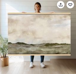 New!✨ 36x54 Soft Watercolor Landscape Canvas | Neutral Foggy Hills Wall Tapestry$30Queen Creek, AZ