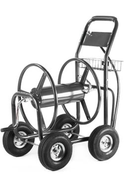 Hose Reel Cart, Hose Cart with Wheels, Water Hose Reel Cart Hose Reels for Outside, 300-Feet Hose Capacity, Grey